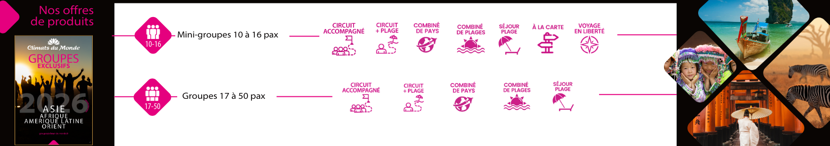 Nous proposons des voyages de groupes privatifs et exclusifs de type :
